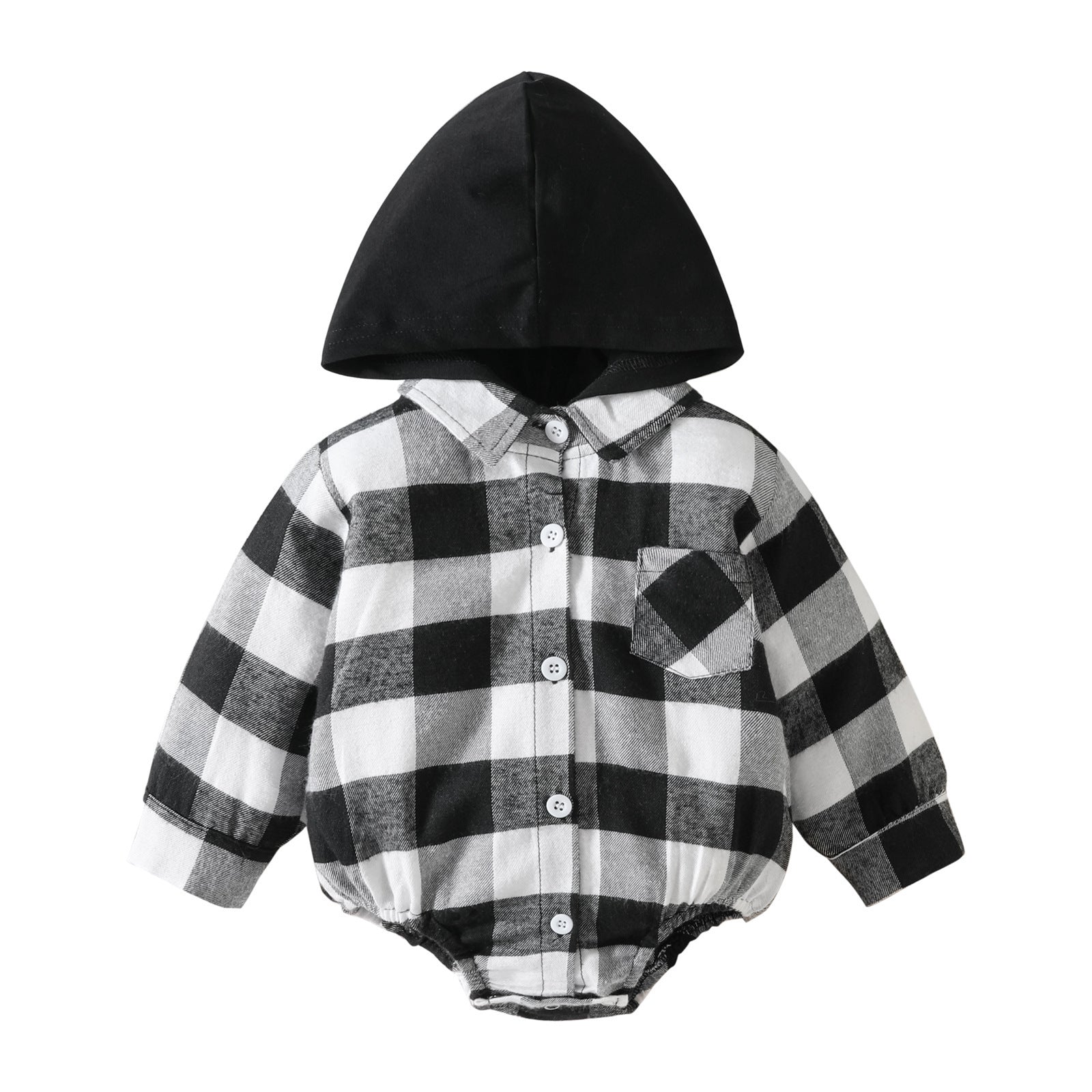 Baby Clothing Christmas Baby Plaid Button Hooded Jumpsuit
