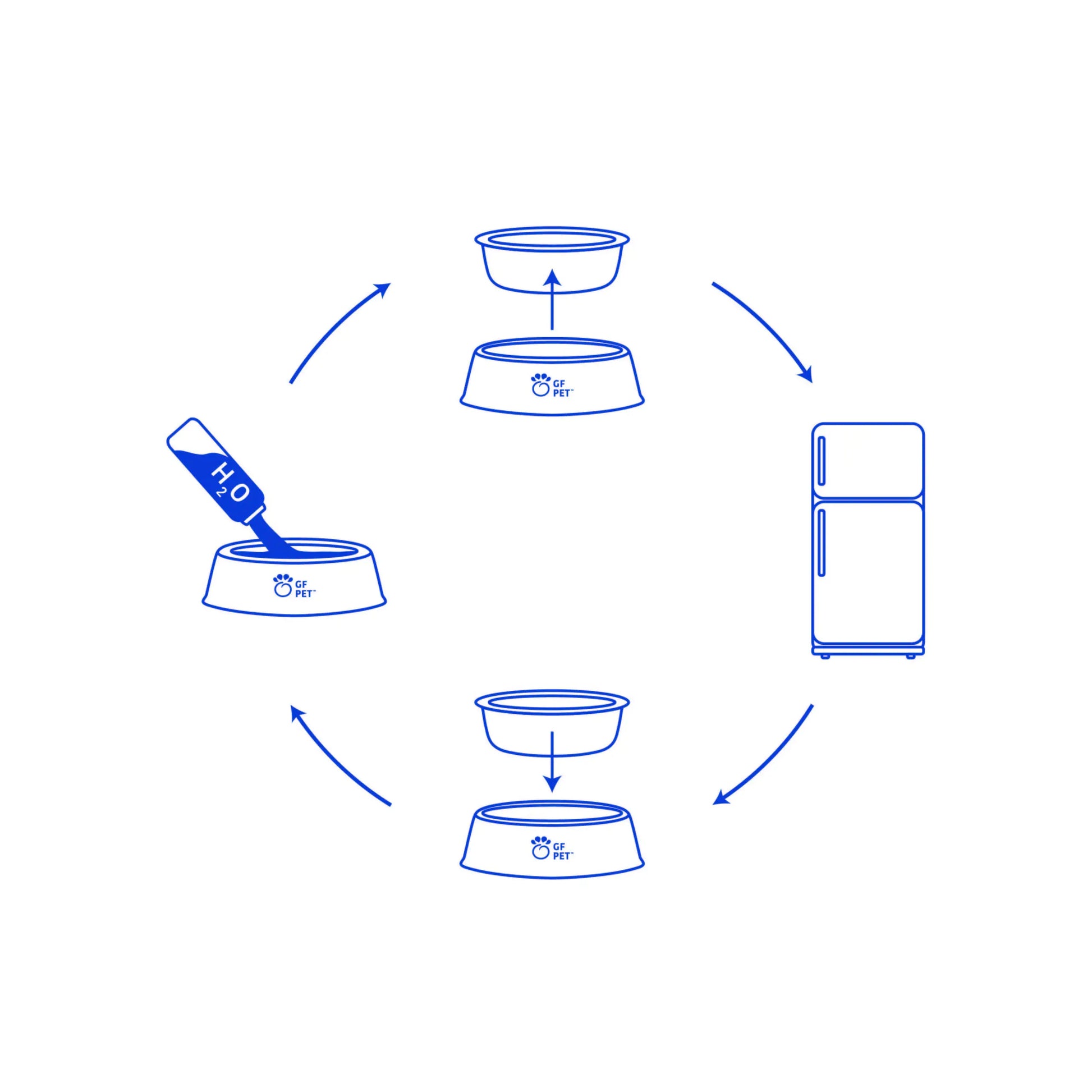 Introducing the GF Pet ICE-BOWL – the perfect solution to keep your pet's water cool for hours. Simply freeze the insert, attach it to the base, fill with water, and let your pet enjoy refreshing hydration all day long. Say goodbye to warm water and hello to a cool oasis for your furry friend!